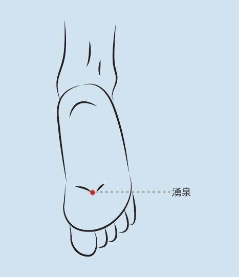 湧泉穴顧名思義就是水如泉湧,為足少陰腎經的「井穴」,本穴位主要功效能令人充滿活力有精神。蘇東坡在《蘇沈良方》中即提到按摩兩腳心(湧泉穴)的保健功效,「且試行二十日,精神自已不同,覺臍下實熱,腰腳輕快,面目有光,久久不已。」