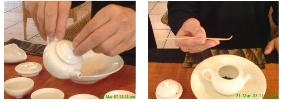 【調息】:太極拳講究氣沉丹田,呼吸要細、勻、深、長,讓自己的內心平靜,呼吸平穩,可以提升身體的能量與氣血的循環,同樣的在泡茶時呼吸不紊亂,不僅使人感受泡茶的從容與自在,對於控制泡茶的時間與流程有更佳的效果,此外由於氣息的調控得宜,對於茶湯的品質有提升的效果。
